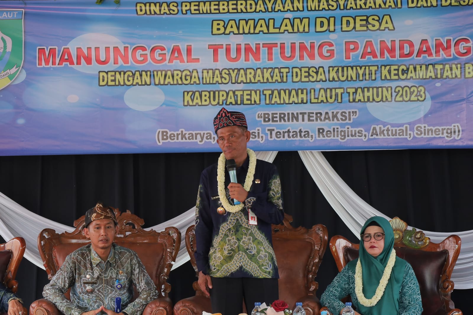 TANAH LAUT, dnusantarapost.com – Bupati Tanah Laut (Tala) HM Sukamta meyakini pada tahun 2025 2026 seluruh desa di Kabupaten Tala akan naik status menjadi desa mandiri. Hal tersebut ia sampaikan saat kegiatan Manunggal Tuntung Pandang (MTP) ke-122 di Desa Kunyit Kecamatan Bajuin, Rabu (21/6/2023).