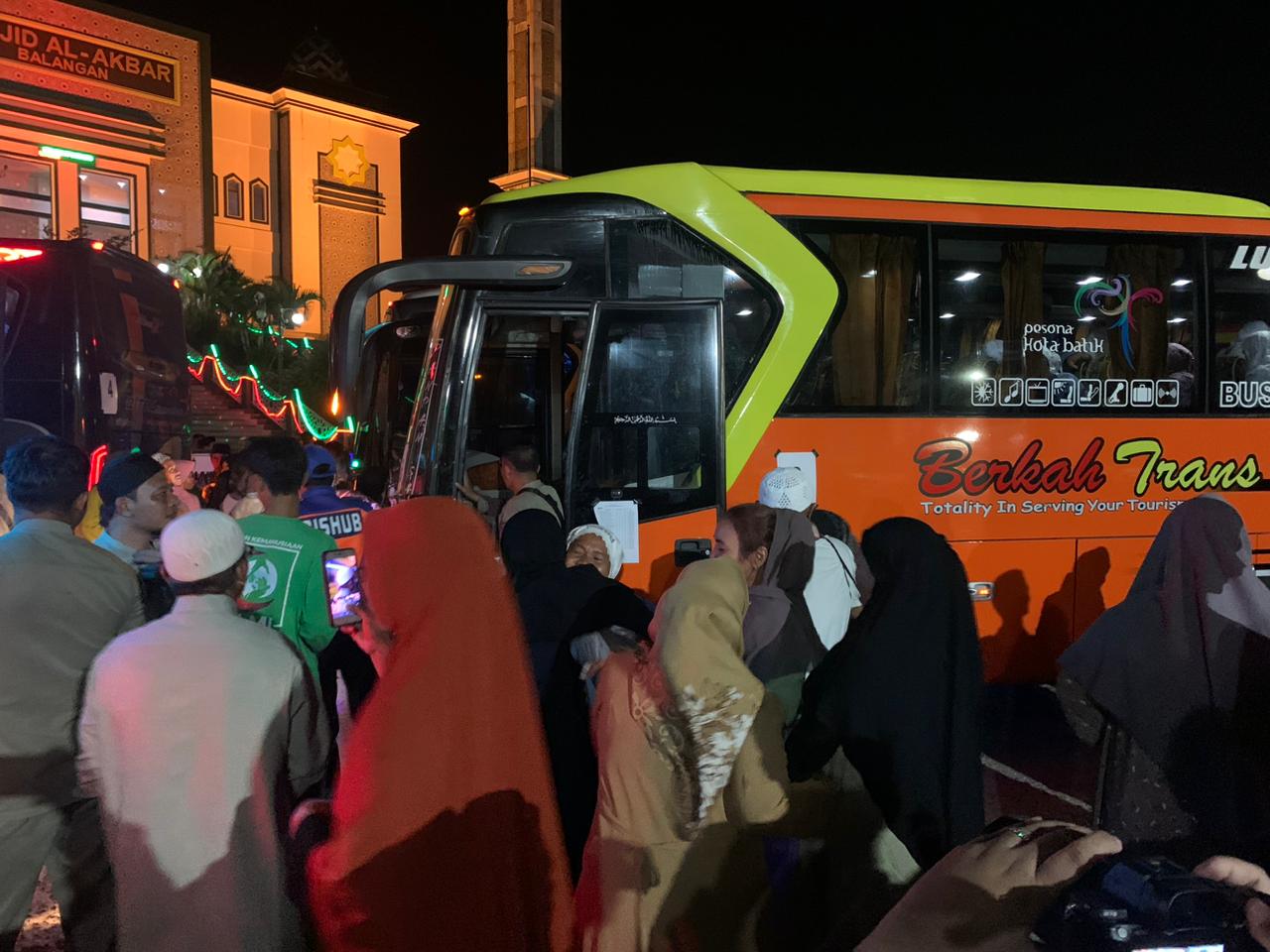 Sejumlah 7 buah bus besar dikawal oleh Satlantas, Dishub dan Satpol PP Balangan mengangkut para jamaah tersebut, yang didampingi oleh petugas dari Dinas Kesehatan PPKB Balangan di setiap bus.