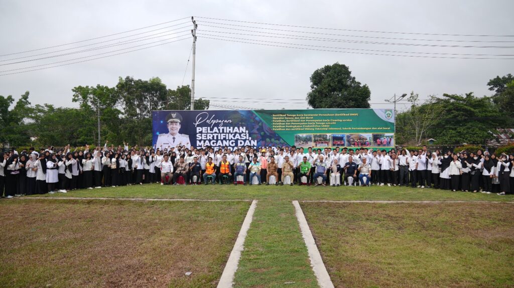 Hari ini, Selasa (24/10/23) di halaman Kantor Bupati Balangan sebanyak 1.609 peserta sertifikasi dari berbagai pelatihan mengikuti kegiatan pelepasan peserta sertifikasi dan penempatan kerja 2023 yang diselenggarakan oleh Pemkab Balangan melalui Dinas Penanaman Modal, Pelayanan Terpadu Satu Pintu, Ketenagakerjaan dan Migrasi (DPMPTSP, Nakertrans).