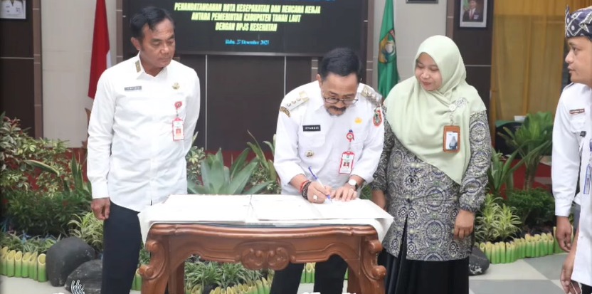 Pada kesempatan itu Syamsir turut melakukan penandatanganan nota kesepakatan dan rencana kerja antara Pemkab Tala dengan pimpinan BPJS Kesehatan Kantor Cabang Banjarmasin tentang optimalisasi program jaminan kesehatan nasional, serta penandatanganan prasasti peresmian Siring Mina Tirta Pelaihari.