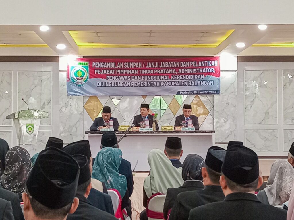 BALANGAN, dnusantarapost.com – Bupati Balangan, Abdul Hadi melantik serta mengambil sumpah jabatan pegawai di lingkup Pemerintah Kabupaten Balangan, Rabu (10/1/2024).