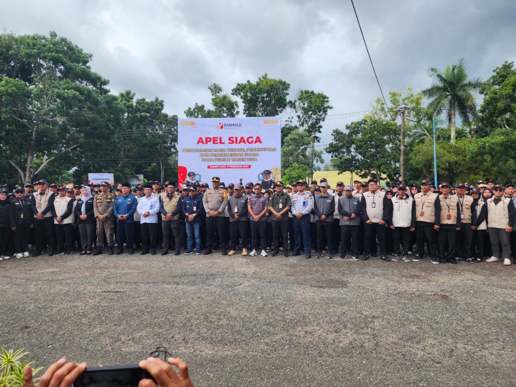 TANAH LAUT, dnusantarapost.com – Penjabat (Pj) Bupati Tanah Laut (Tala), H. Syamsir Rahman, pimpin Apel Siaga Pengawasan Masa Tenang, Pemungutan, dan Penghitungan Suara yang diselenggarakan oleh Badan Pengawas Pemilu (Bawaslu) Tala.