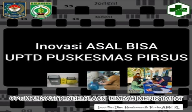BALANGAN, dnusantarapost.com – UPT Puskesmas Pirsus membuat inovasi ASAL BISA (optimalisasi pengelolaan limhah medIs padat untuk pengelolaan limbah medis khusus padat agar tidak terjadi penumpukan sampah dan pembiaran sampah di Puskesmas.