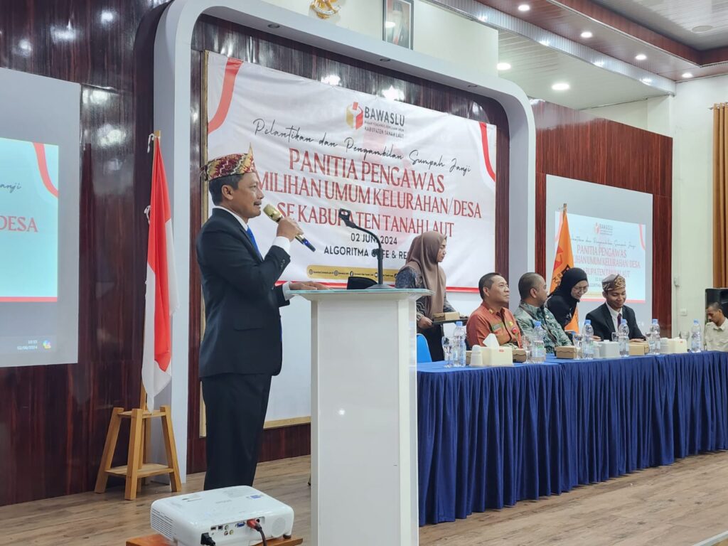 TANAH LAUT, dnusantarapost.com – Badan Pengawas Pemilu (Bawaslu) Kabupaten Tanah Laut (Tala) gelar Pelantikan dan Pengambilan Sumpah Janji Anggota Panwalu Kelurahan/Desa (PKD). Adapun sebanyak 135 orang dilantik dan dikukuhkan oleh Ketua Bawaslu Tala, Gunawan Rahayu. Kegiatan tersebut diselenggarakan di salah satu cafe di Pelaihari, Minggu (02/06/202).