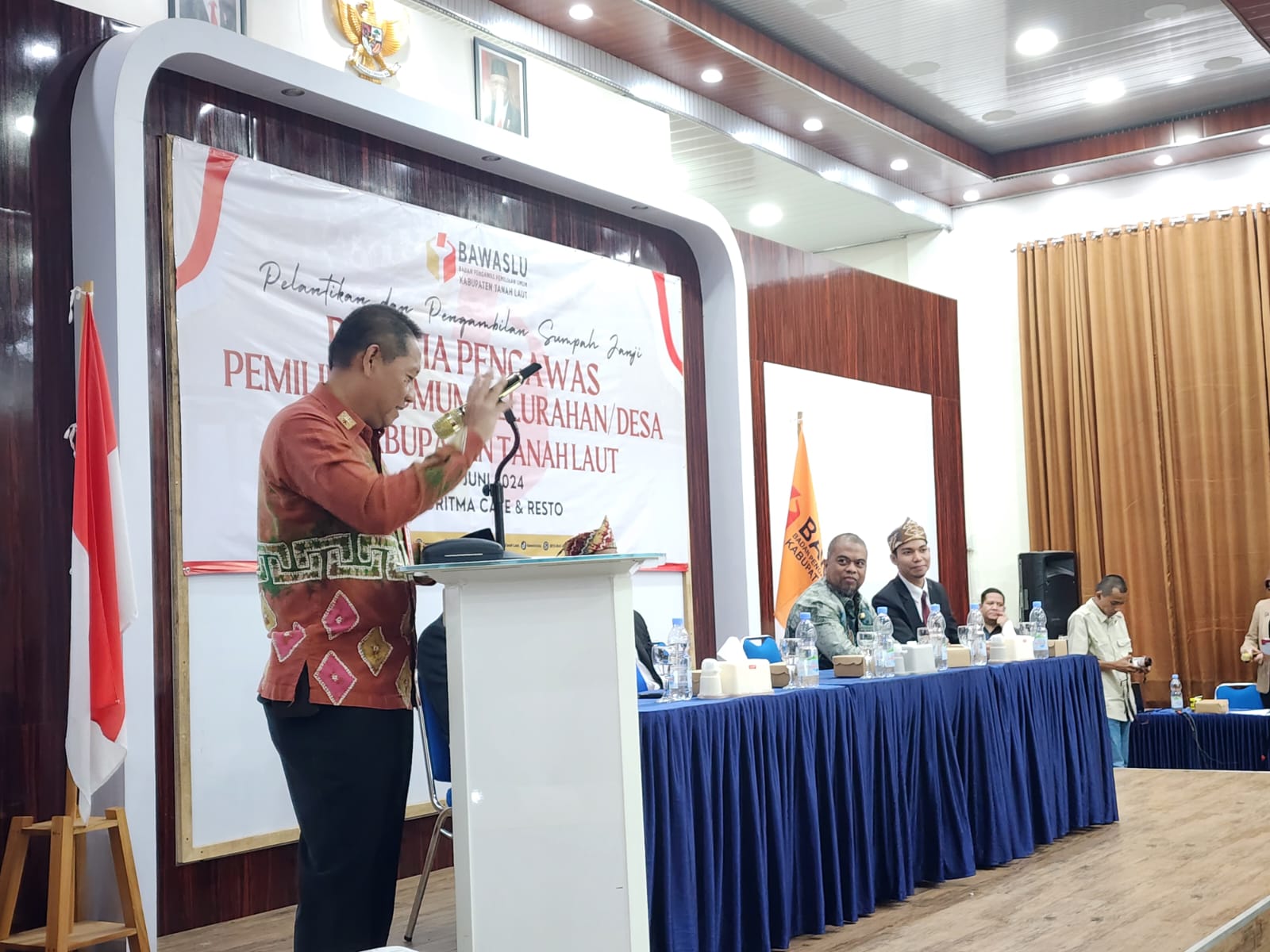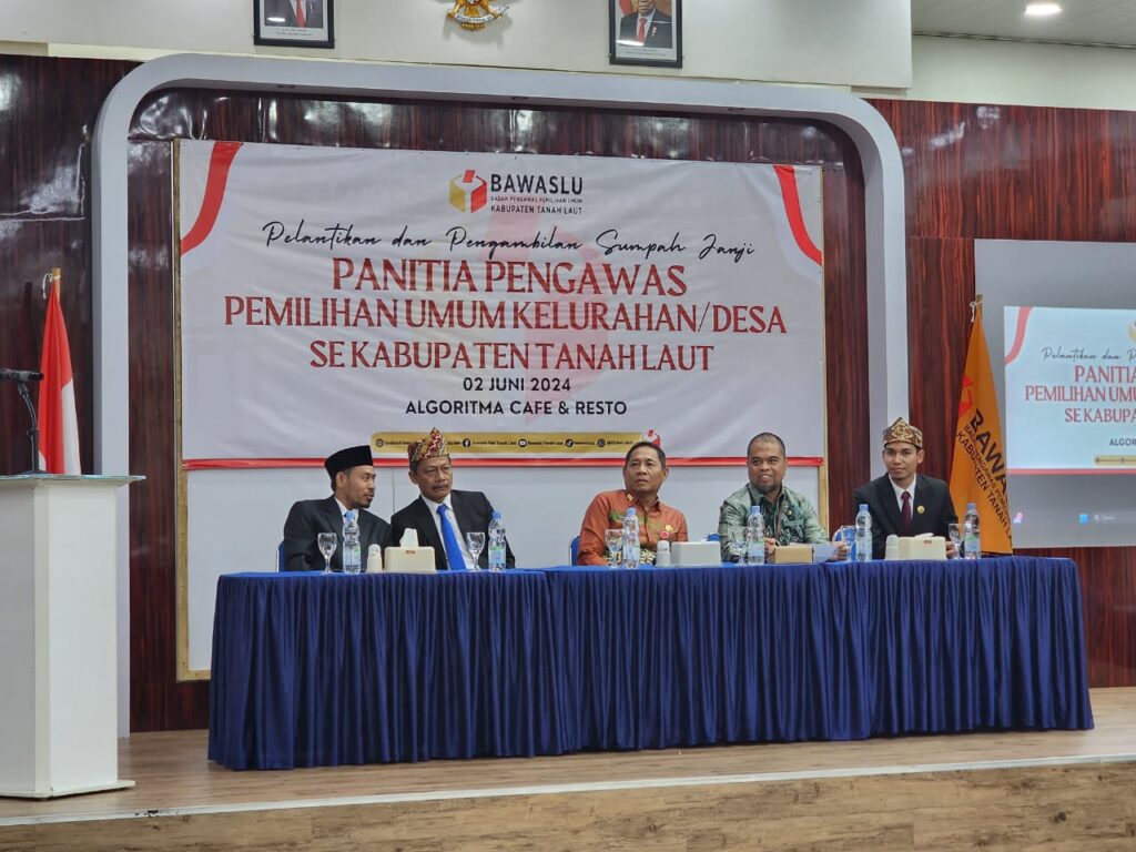 TANAH LAUT, dnusantarapost.com – Penjabat (Pj) Sekretaris Daerah (Sekda) Tanah Laut (Tala), Faried Widiyatmoko hadiri Pelantikan dan Pengambilan Sumpah Janji Anggota Panwaslu Kelurahan/Desa (PKD) untuk Pilkada tahun 2024 di Kab. Tala. Kegiatan tersebut diselenggarkan di salah satu cafe di Pelaihari, Minggu (02/06/2024).