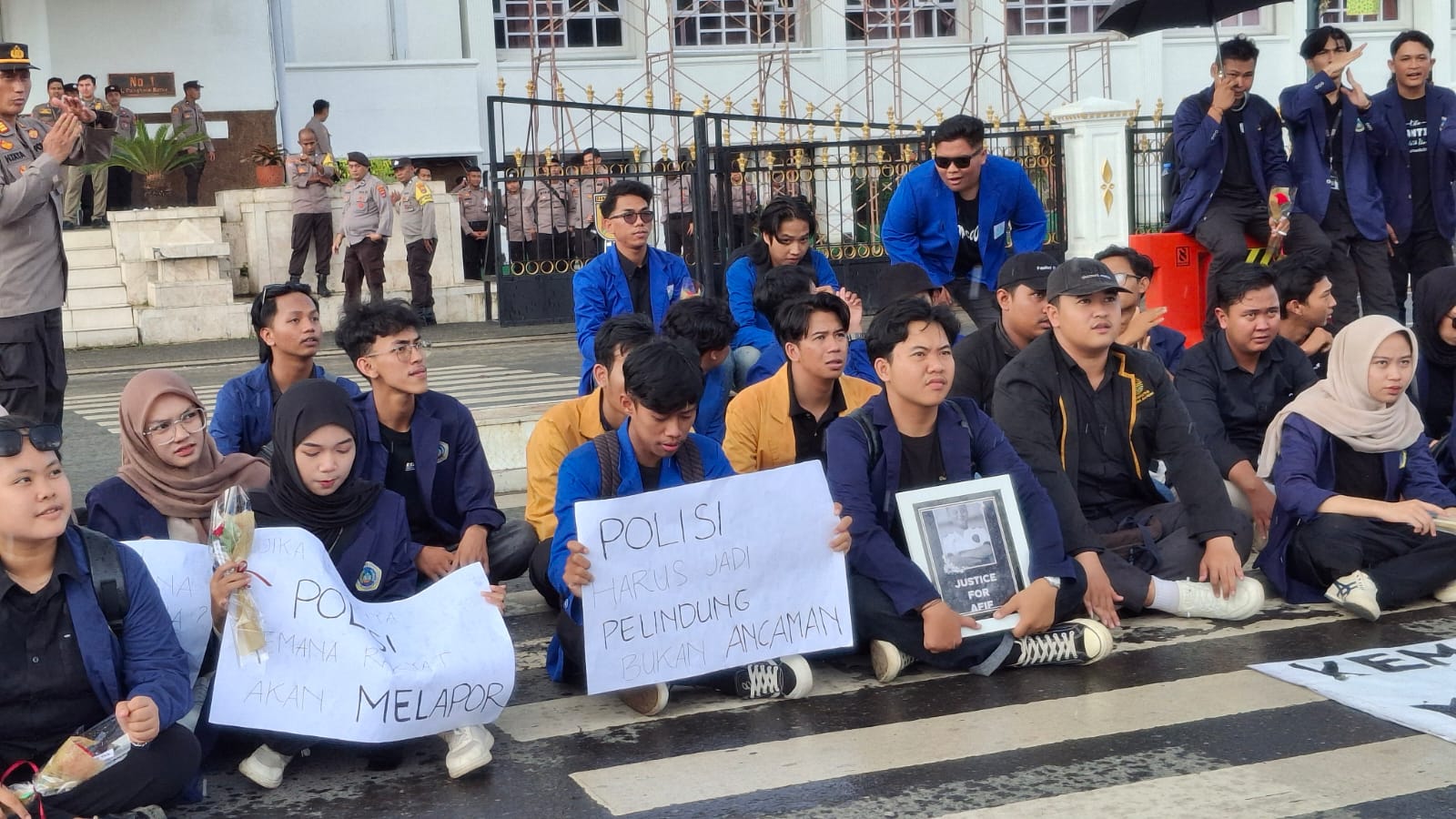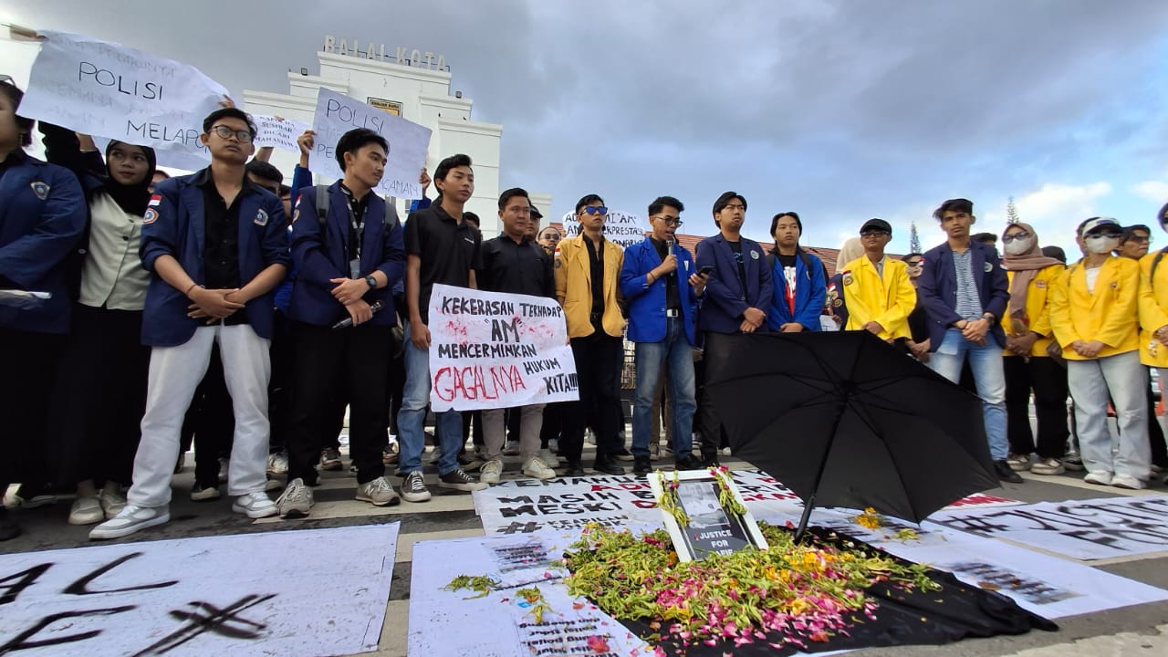 Para mahasiswa BEM se-Kalsel menjunjung tinggi rasa kemanusian mereka untuk keadilan Afif Maulana, seorang remaja yang ditemukan meninggal dunia di Sungai Kuranji, tepatnya di bawah jembatan di Jalan Bypass KM 9 Kelurahan Pasar Ambacang, Kecamatan Kuranji, pada Minggu (29/6/2024). Dari pemberitaan yang beredar, Afif Maulana diduga mengalami penganiayaan oleh pihak kepolisian.