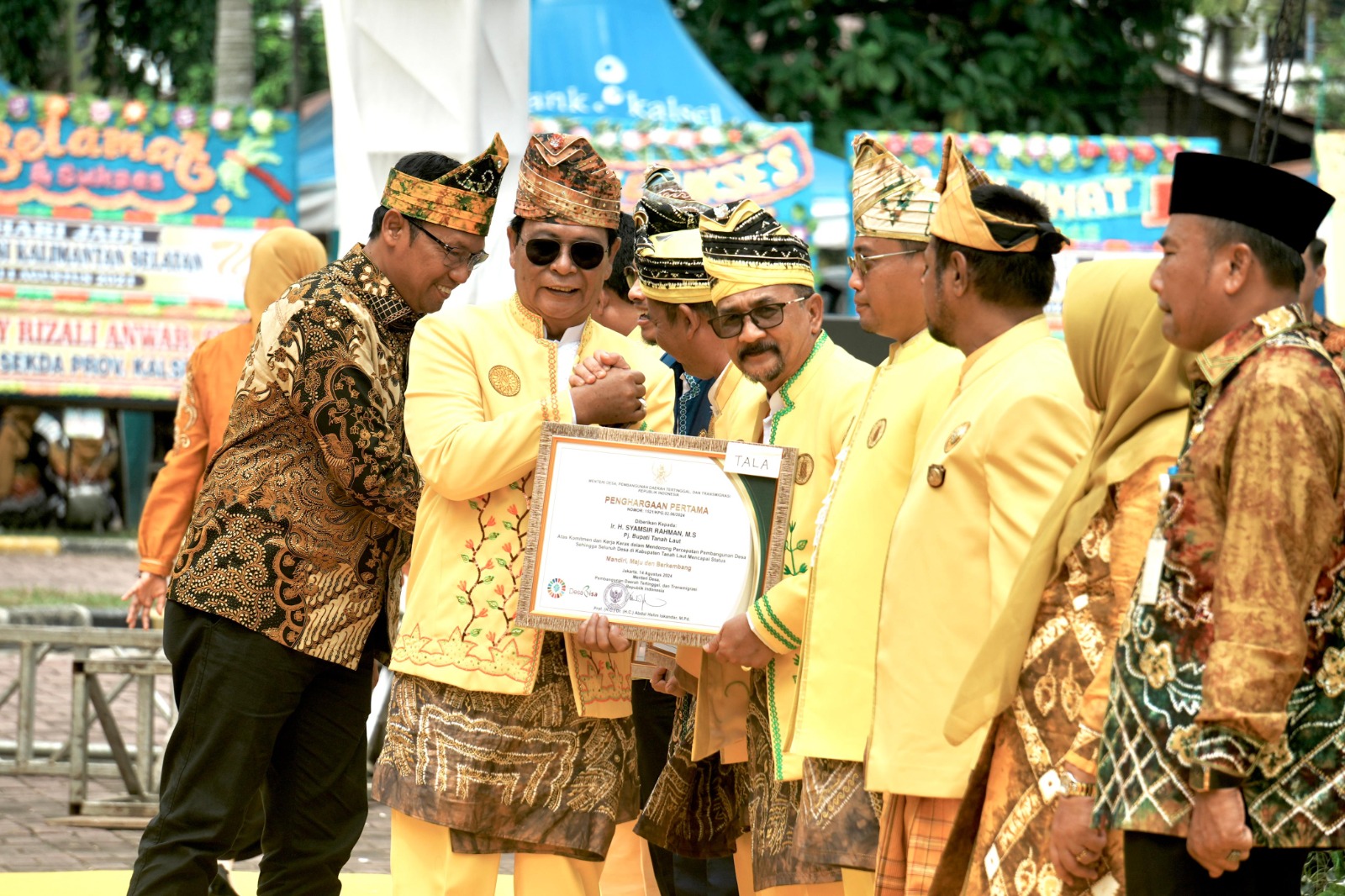 BANJARMASIN, dnusantarapost.com – Pemerintah Kabupaten (Pemkab) Tanah Laut (Tala) kembali meraih dua penghargaan bergengsi yang diterima langsung oleh Penjabat (Pj) Bupati Tala, H. Syamsir Rahman pada acara puncak peringatan Hari Jadi ke-74 Provinsi Kalimantan Selatan (Kalsel) di ex Kantor Gubernur Kalsel Banjarmasin pada Rabu (14/08/2024).Dua penghargaan yang diserahkan oleh Gubernur Kalsel, H. Sahbirin Noor yakni penghargaan dari Kementerian Desa, Pembangunan Daerah Tertinggal, dan Transmigrasi (Kemendesa PDTT) Republik Indonesia (RI) atas komitmen dan kerja keras dalam mendorong percepatan pembangunan desa sehingga seluruh desa di Kabupaten Tala mencapai status mandiri, maju dan berkembang.Selain itu juga diserahkan penghargaan SATU WASAKA Award (Sanitasi dan Air Minum Tuntas Waja Sampai Kaputing) dari Pemerintah Provinsi Kalsel atas partisipasi dalam kegiatan penuntasan akses sanitasi dan air minum di tahun 2024.Pj Bupati usai kegiatan mengungkapkan rasa syukur atas diraihnya penghargaan untuk Kabupaten Tala. Ia juga menjelaskan bahwa penghargaan ini merupakan hasil kerja sama dan kolaborasi banyak pihak termasuk unsur masyarakat.”Alhamdulillah, di Kabupaten Tanah Laut tidak ada lagi desa yang tertinggal. Kedua penghargaan ini kami persembahkan untuk seluruh masyarakat dan kedepan kita akan terus berupaya untuk memajukan Tanah Laut agar lebih tangguh dan semakin menyala,” kata Syamsir.Pada kesempatan ini, Pj Bupati dan Pj Ketua TP PKK Tala, Hj Rizki Yulia Syamsir Rahman mengunjungi stand Kabupaten Tala dan ikut membagikan makanan dan suvenir gratis kepada masyarakat yang hadir. (Rsd).