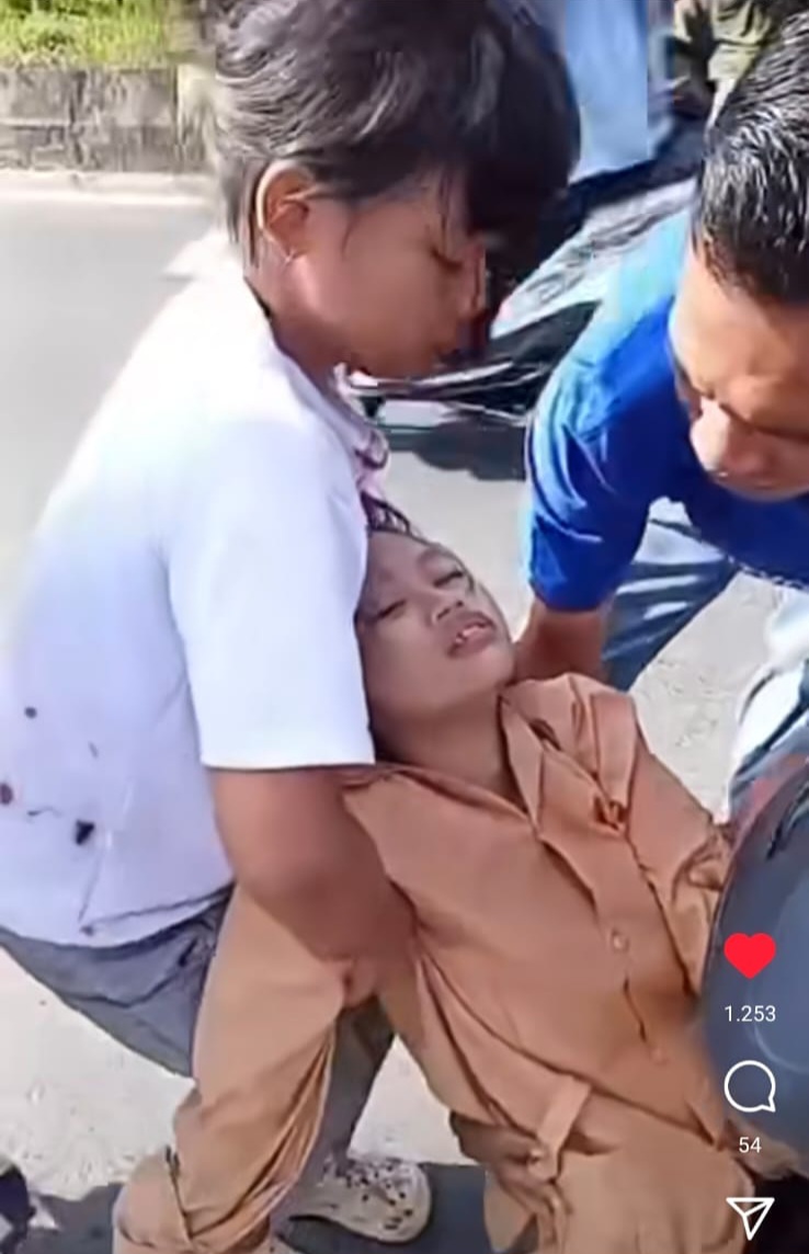 Sedangkan satu anak perempuan lainnya mengenakan baju berwarna putih dengan kondisi darah bercucuran di kepalanya. Anak perempuan yang mengenakan baju putih ini bangkit dan berusaha menolong temannya yang mengenakan seragam pramuka bersama petugas kepolisian dan sejumlah warga. Kedua korban dievakuasi menggunakan unit mobil milik BPBD Kota Banjarbaru.