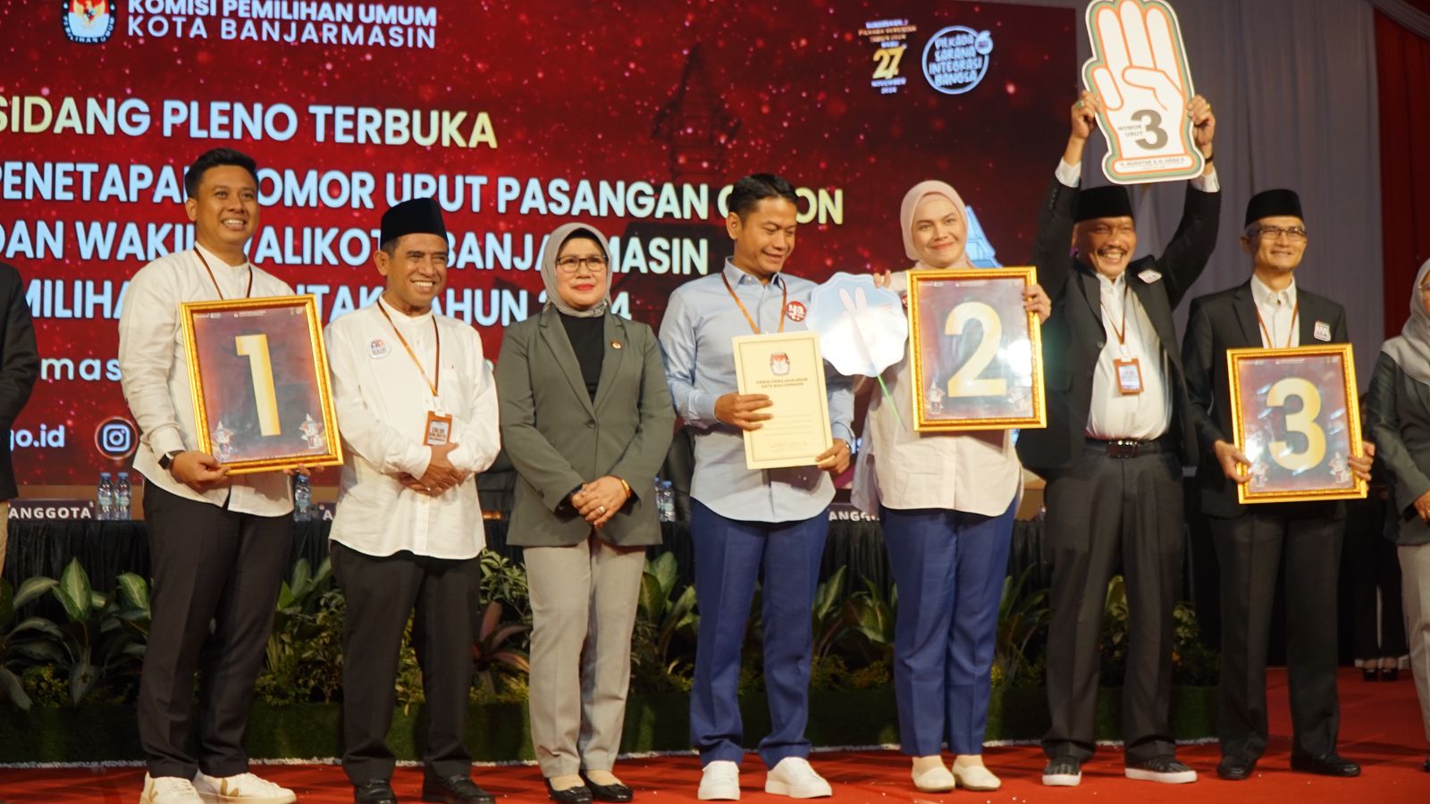 “Alhamdulillah selesai kita laksanakan, dan ada tiga paslon yang mendapatkan nomor urut,” ujar Ketua KPU Banjarmasin, Rusnailah.