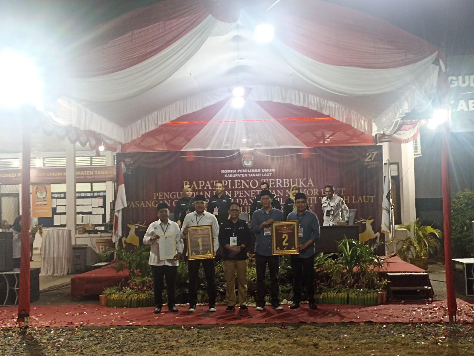 TANAH LAUT, dnusantarapost.com – Komisi Pemilihan Umum (KPU) Kabupaten Tanah Laut (Tala) menggelar pengundian nomor urut pasangan calon (paslon) Bupati dan Wakil Bupati Kabupaten Tala pada Senin (23/9/2024) malam.