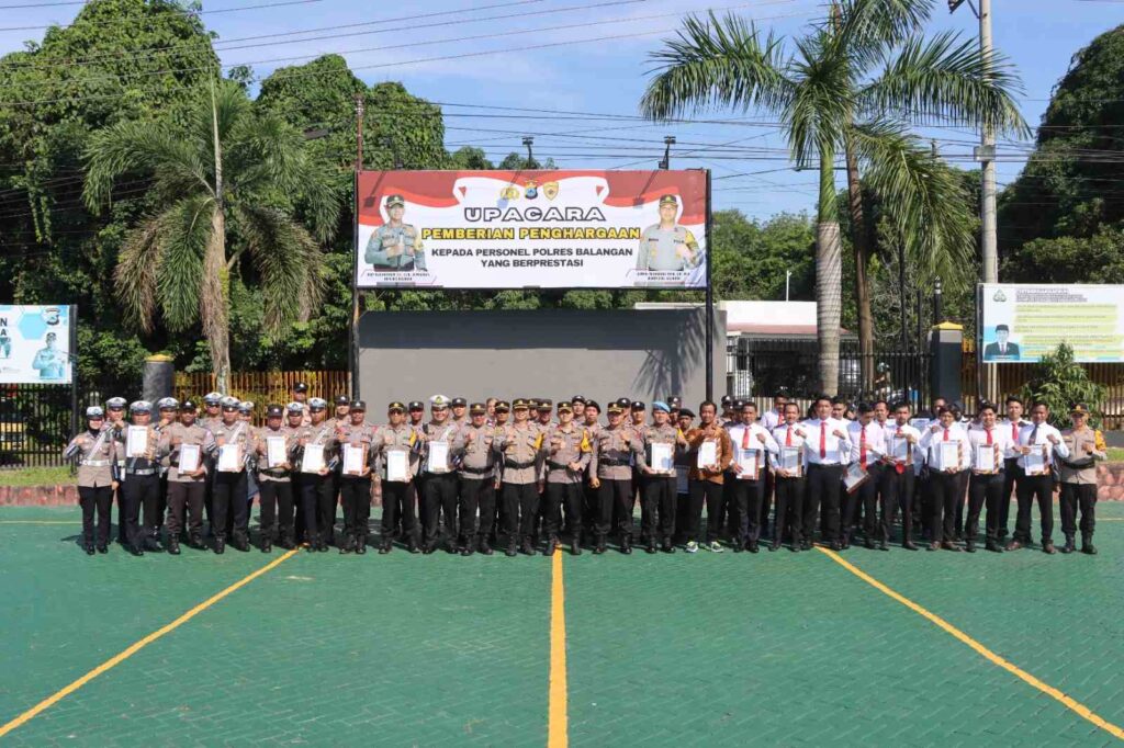 BALANGAN, dnusantarapost.com – Bertempat di Lapangan Upacara Polres Balangan, pada hari Senin (7/10/2024), dilaksanakan upacara pemberian penghargaan kepada personil Polres Balangan yang berprestasi.