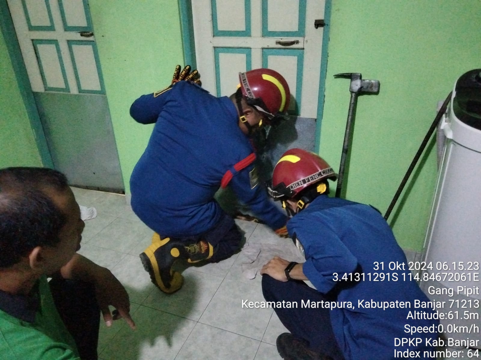 MARTAPURA, dnusantarapost.com- Dinas Pemadam Kebakaran dan Penyelamatan Kabupaten Banjar menerima laporan seorang nenek terkunci di dalam kamar mandi di Jalan Batuah, Gang Murai, Kelurahan Jawa pada Kamis (31/10/2024) pagi.
