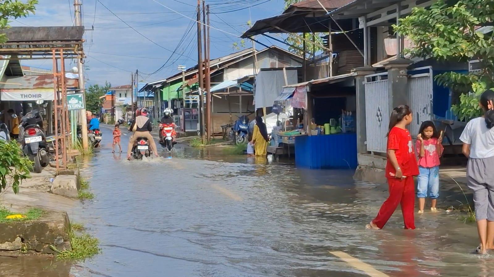 Tidak hanya menggenangi beberapa ruas jalanan, air juga mulai menggenangi halaman rumah warga. Di sore hari, terlihat anak-anak yang merupakan warga sekitar asyik bermain air di halaman rumah warga dengan diawasi oleh orang dewasa.