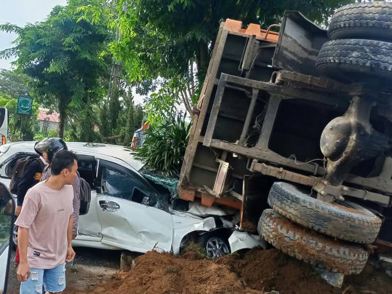 Mobil yang tertabrak, bernomor polisi DA 1742 YC, merupakan milik Mulyadi, yang saat itu sedang menjemput anak-anak sekolah. Mulyadi sempat terjepit saat bagian depan mobilnya dihantam truk.