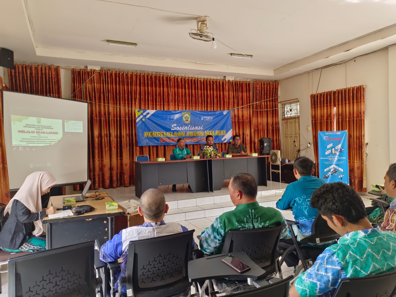 Narasumber dari Diskominfostandi Balangan, Yusma, dalam paparannya menjelaskan strategi pengelolaan komunikasi publik melalui sistem tersebut. Ia juga memperkenalkan berbagai saluran pengaduan, termasuk WhatsApp, SMS, media sosial, hingga aplikasi LAPOR Balangan.