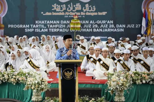 BANAJRMASIN, dnusantarapost.com – Wali Kota Banjarmasin HM Yamin HR, menghadiri kegiatan khataman dan Imtihan Al-Qur’an di SMP Islam Terpadu Ukhuwah Banjarmasin, Kamis (15/05/25).