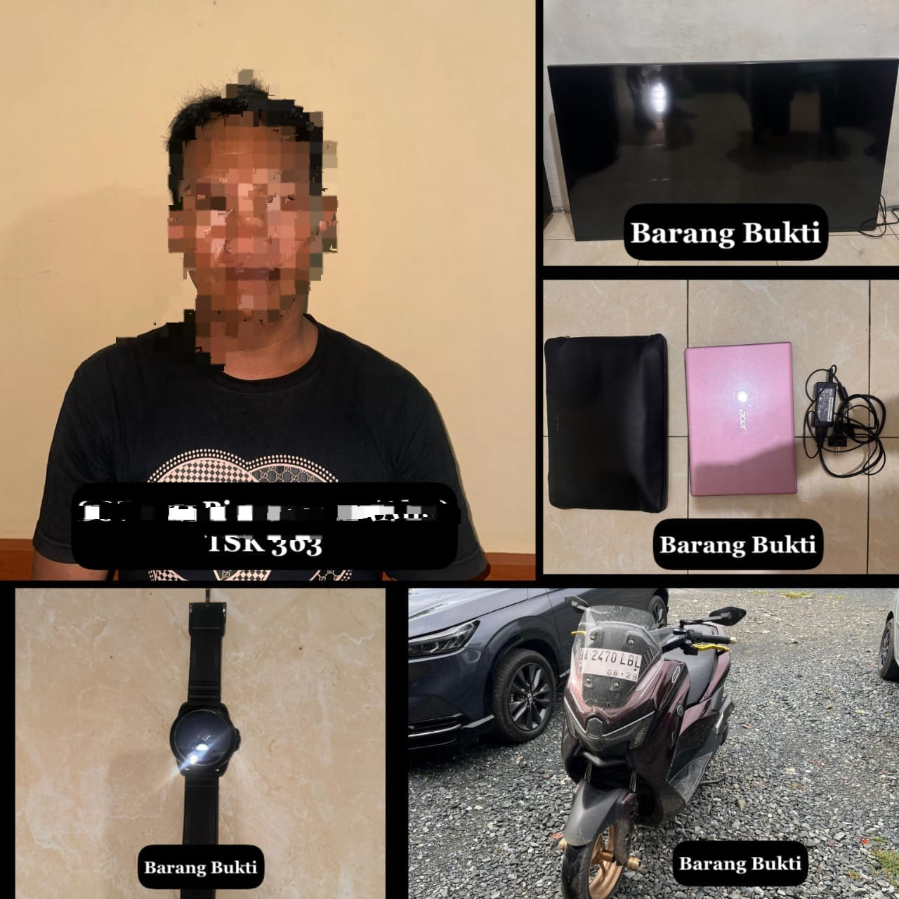 Dari kasus pencurian dengan pemberatan ini, kepolisian menyita barang bukti berupa TV LED, laptop, jam tangan dan stu unit sepeda motor yang menjadi sarana pelaku dalam melancarkan aksinya. Pelaku pun disangkakan pasal Pasal 363 ayat 1 ke 5 KUHP Tentang Tindak Pidana Pencurian dengan Pemberatan.