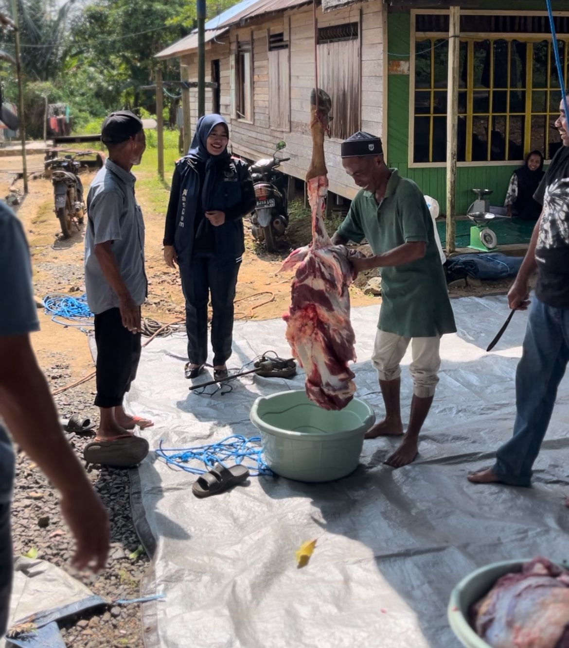 Sapi kurban tersebut disembelih di Desa Tambang Ulang, Kecamatan Tambang Ulang, pada Sabtu (7/6/2025), dan dagingnya dibagikan kepada masyarakat sekitar.