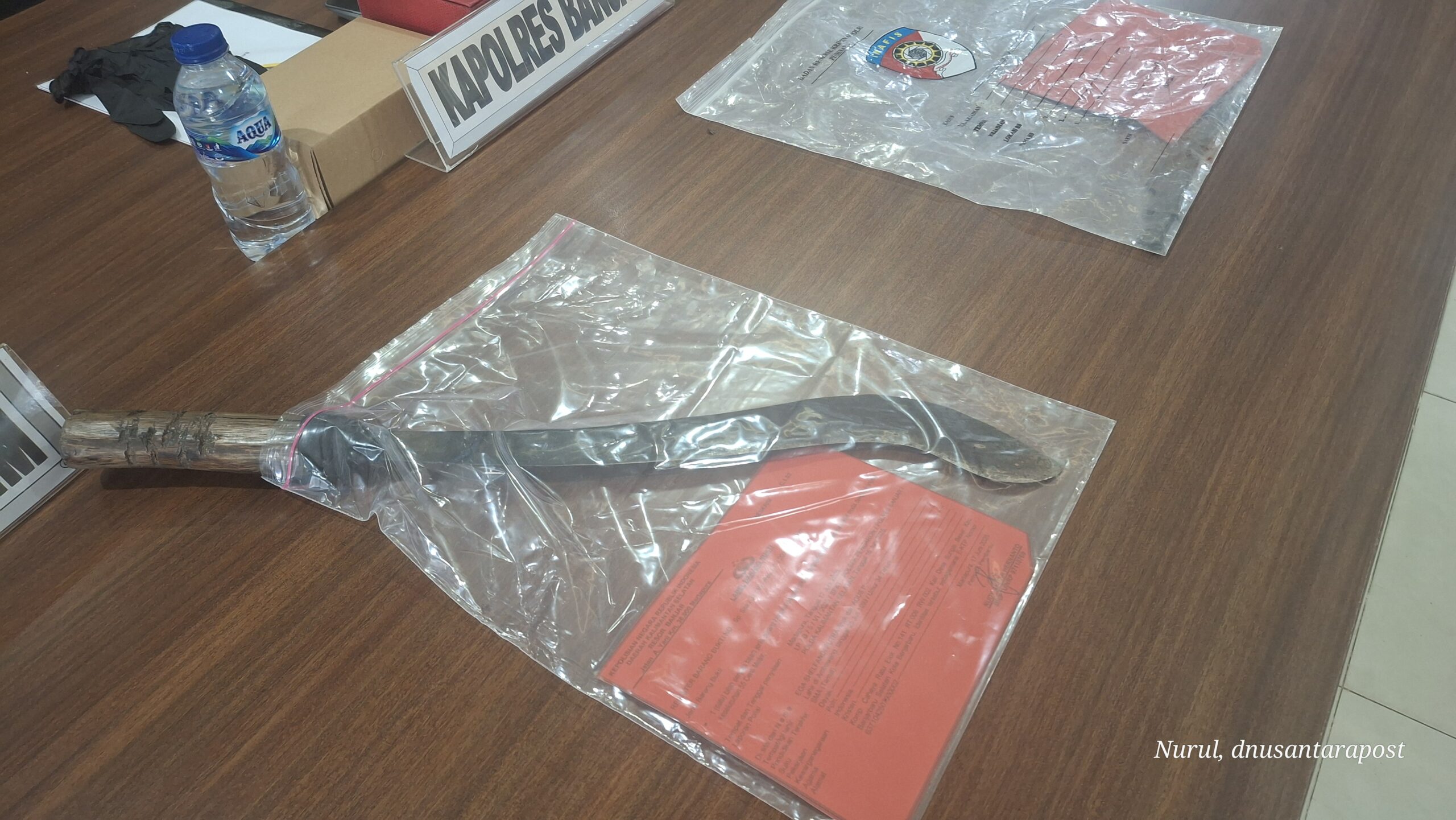 Dari tangan pelaku, polisi menyita barang bukti berupa pisau, parang, dan pakaian korban yang masih berlumuran darah.