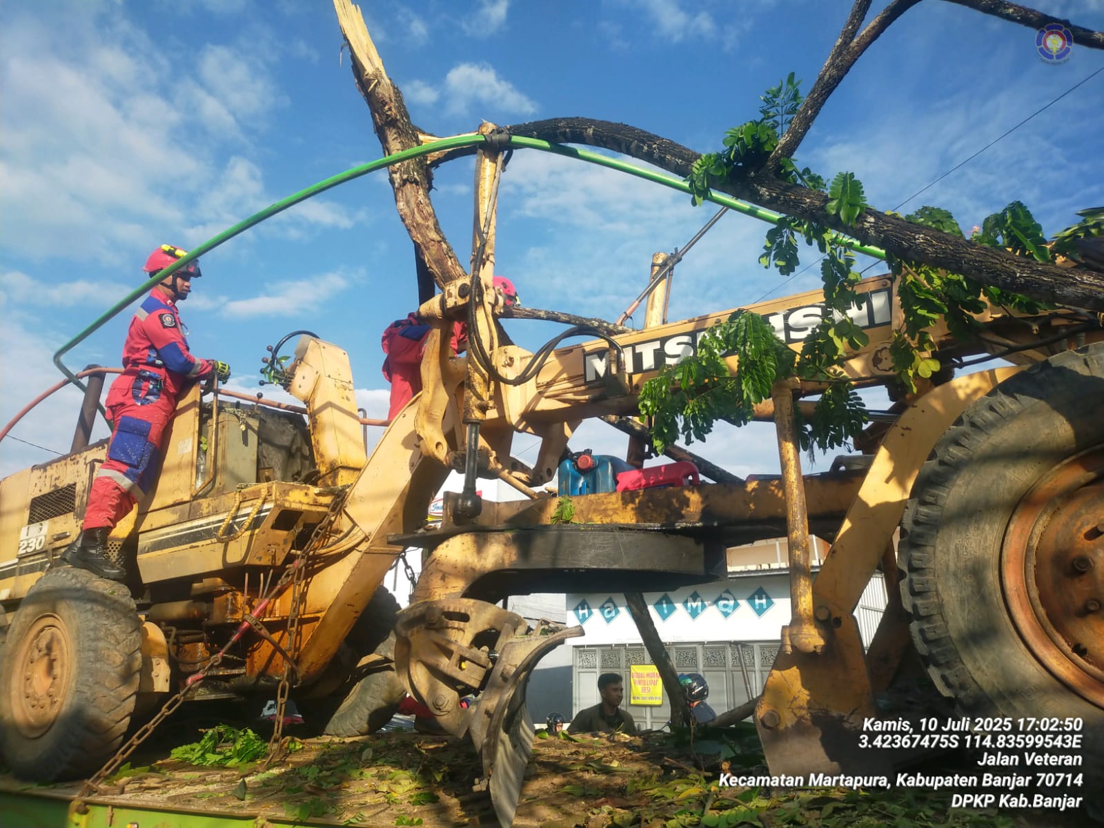 Petugas DPKP Banjar Evakuasi Pohon Tumbang di Jalan Veteran Sungai Sipai