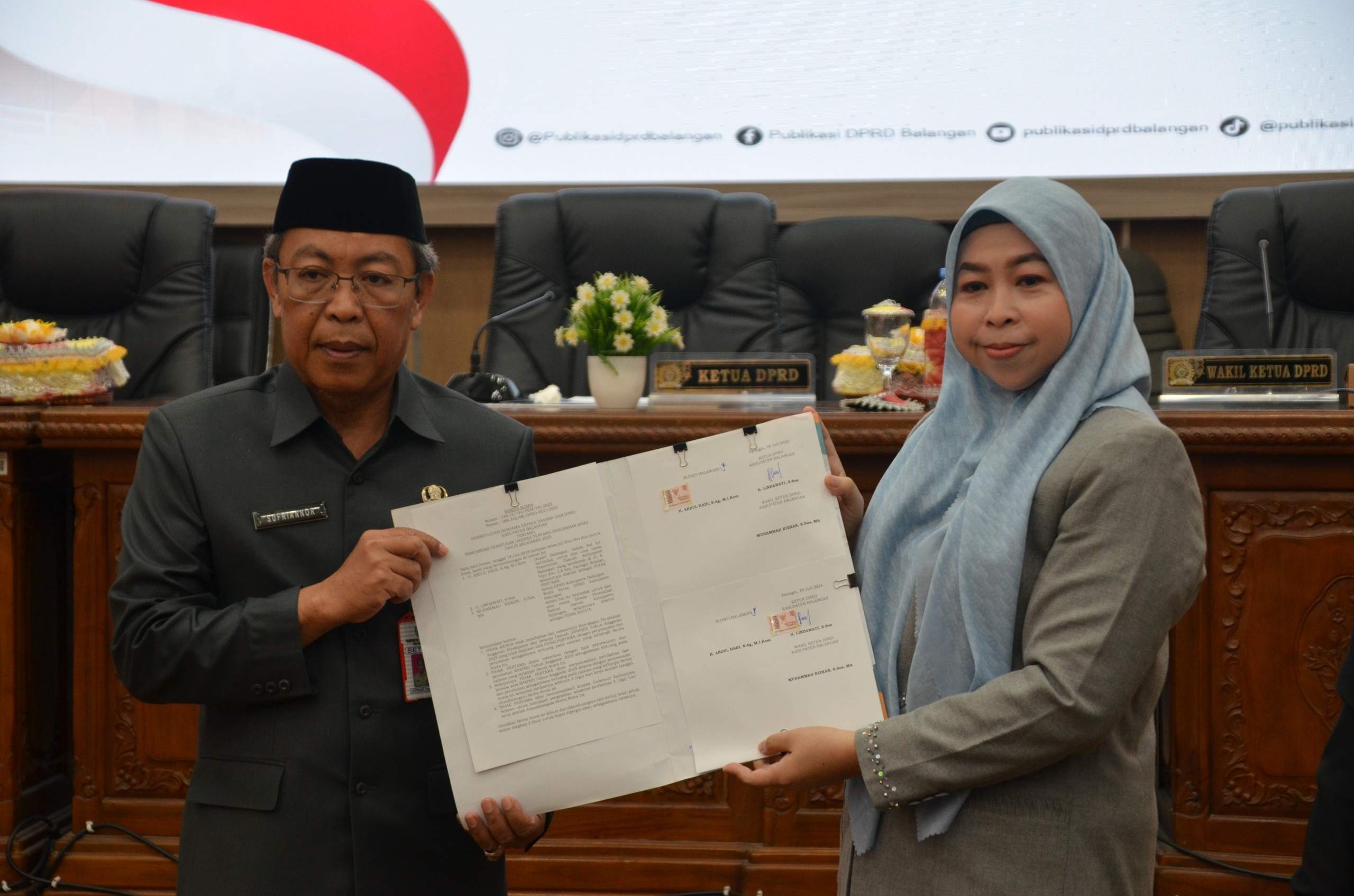 “Penerimaan, berbagai masukan, pembahasan hingga perbaikan yang dilakukan, hingga akhirnya disetujui bersama, adalah bentuk nyata dari komitmen kita semua dalam membangun Banua Sanggam,” ujar Bupati Abdul Hadi dalam sambutannya.