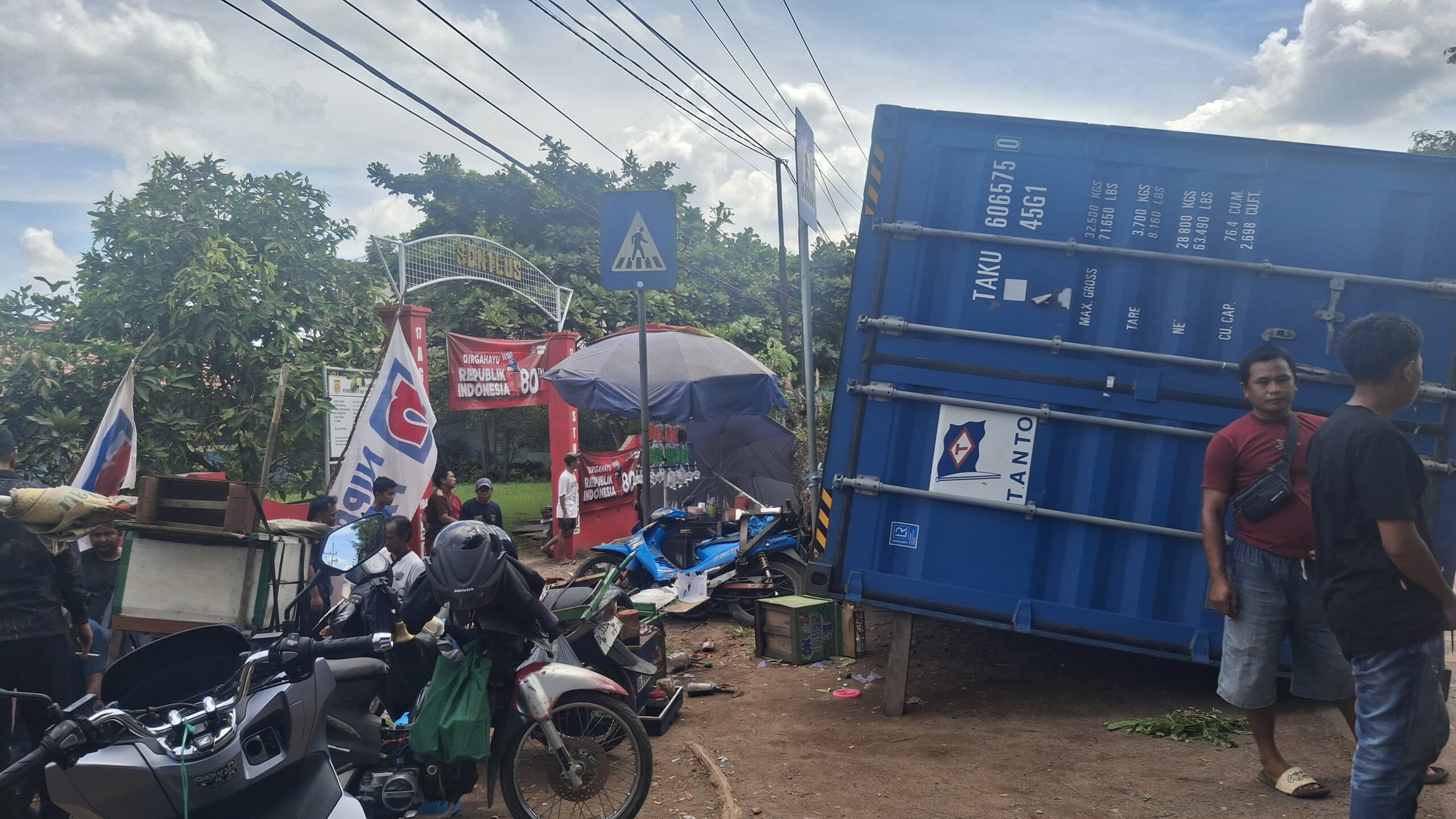 BANJARBARU, dnusantarapost.com – Sebuah Box Kontainer jatuh di depan SDN 1 Landasan Ulin Selatan pada Kamis (14/8/2025) siang dan menyebabkan 9 orang pelajar luka-luka dan dagangan pedagang porak poranda.