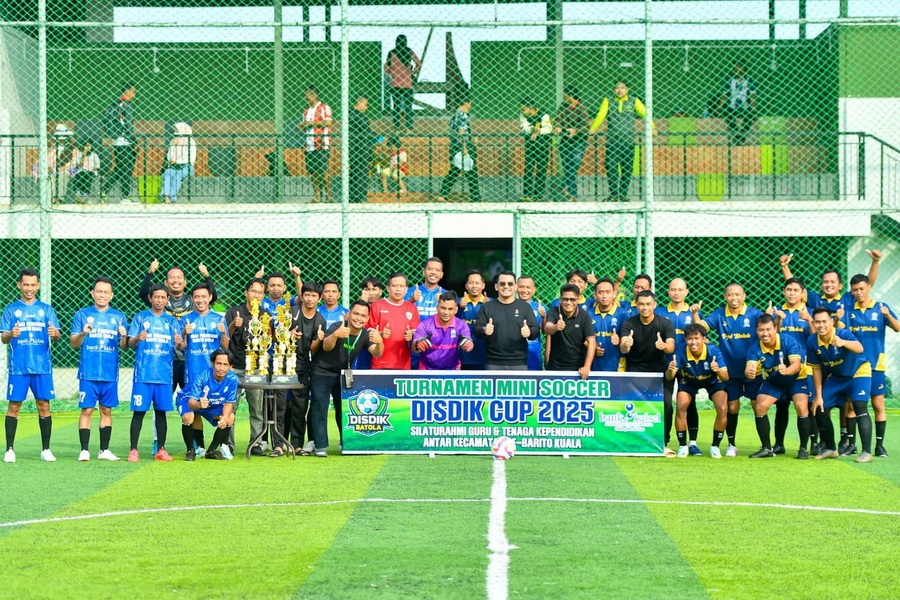 BARITO KUALA, dnusantarapost.com – Dinas Pendidikan Kabupaten Barito Kuala gelar turnamen mini soccer Disdik Cup 2025 antar Guru dan tenaga kependidikan se-Kabupaten Barito Kuala , Minggu (24/8/2025)