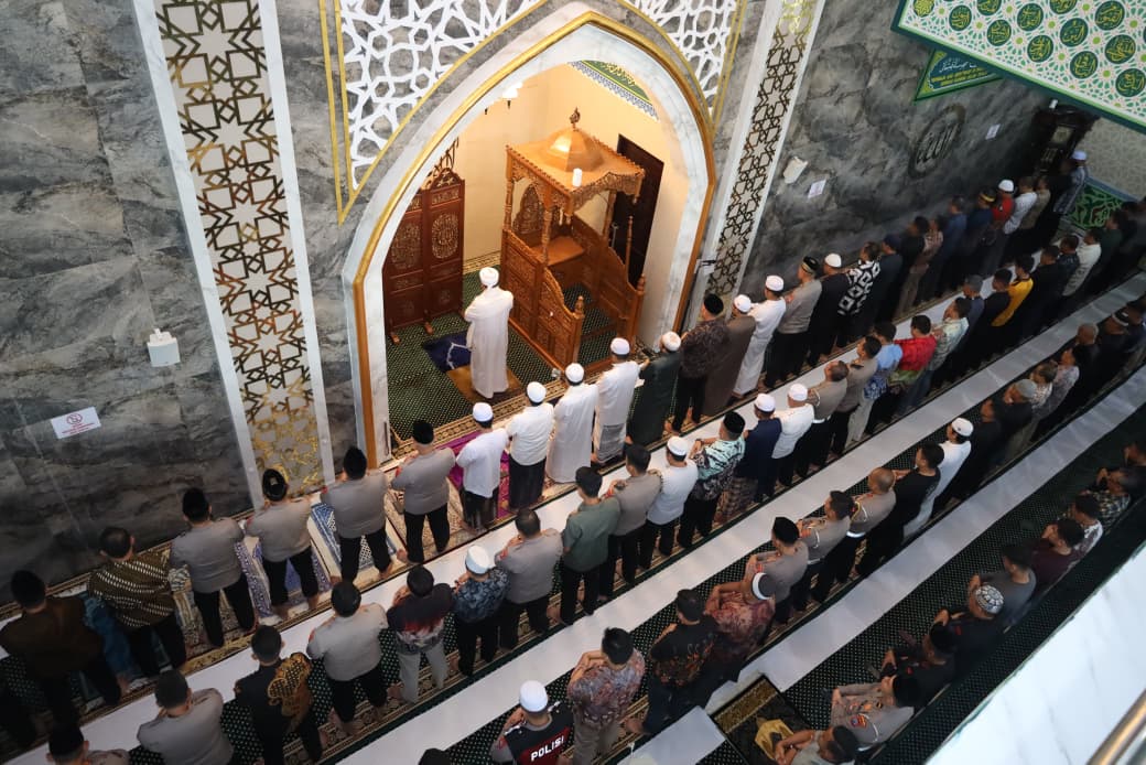Shalat ghaib berlangsung di Masjid Riyadus Shalihin, Mapolda Kalsel Banjarbaru, Jumat (29/8/2025), seusai salat Jumat berjamaah. Kegiatan ini diikuti Kapolda Kalsel Irjen Pol Rosyanto Yudha Hermawan, Irwasda, para pejabat utama, serta personel Polri dan ASN Polda Kalsel.