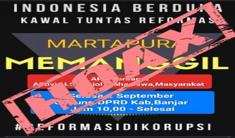Dalam selebaran bergambar yang beredar di media sosial, tercantum ajakan aksi bertajuk “Martapura Memanggil” dengan melibatkan aktivis, LSM, ojek online, mahasiswa, dan masyarakat, yang dijadwalkan berlangsung pukul 10.00 WITA hingga selesai.