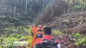 Perjalanan Tim SAR di dalam hutan  belantara yang ada di Desa Emil Baru, Kecamatan Mantewe, Kabupaten Tanah Bumbu terbilang panjang.