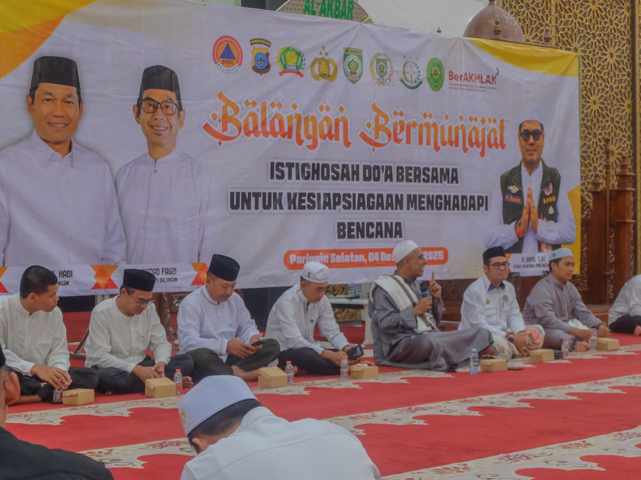 BALANGAN, dnusantarapost.com – Pemerintah Kabupaten Balangan kembali menguatkan kesiapsiagaan bencana melalui pendekatan spiritual dengan menggelar “Balangan Bermunajat” di Masjid Al Akbar Balangan, Kamis (4/12/2025). Kegiatan bernuansa religius ini menjadi wadah bagi masyarakat serta BPBD Balangan untuk bermohon keselamatan sekaligus memperteguh ikhtiar menghadapi potensi bencana di daerah.