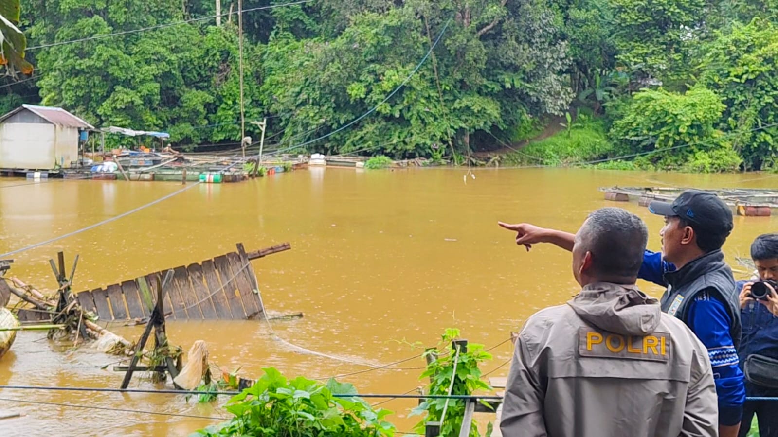 Derasnya aliran air sungai yang meluap diduga menjadi penyebab utama rusaknya konstruksi jembatan sehingga tidak dapat dilalui.