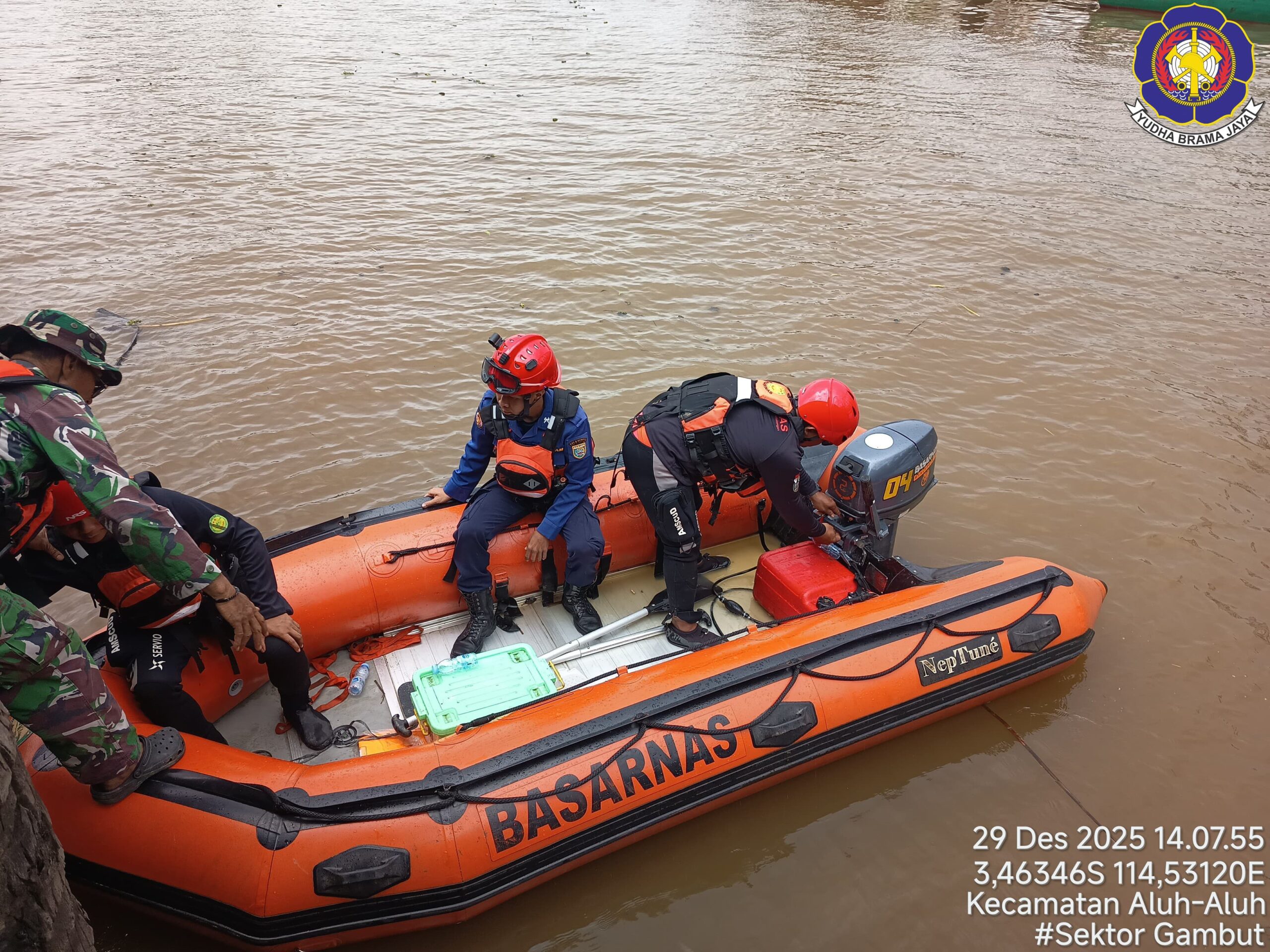 Pencarian korban dilanjutkan pada Senin (29/12/2025) mulai pukul 14.10 WITA. Tim gabungan melakukan penyisiran permukaan sungai sejauh kurang lebih dua kilometer, mulai dari Titik 0 Jembatan hingga dermaga di depan Kantor Kecamatan Aluh-Aluh.