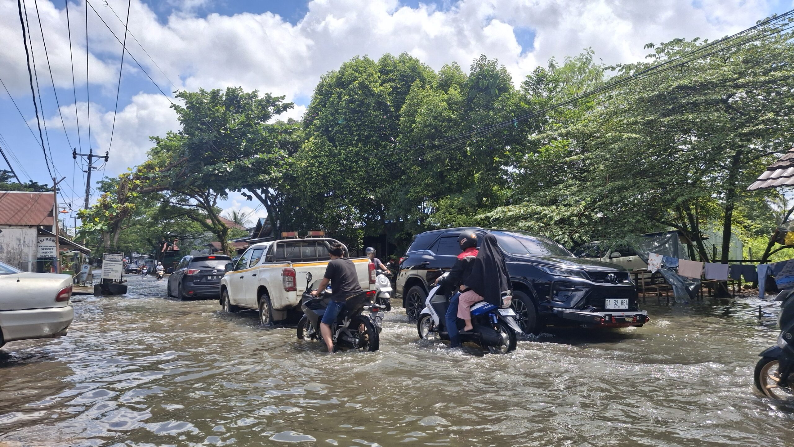 Meski demikian, genangan masih terlihat di sejumlah titik jalan dan permukiman warga.