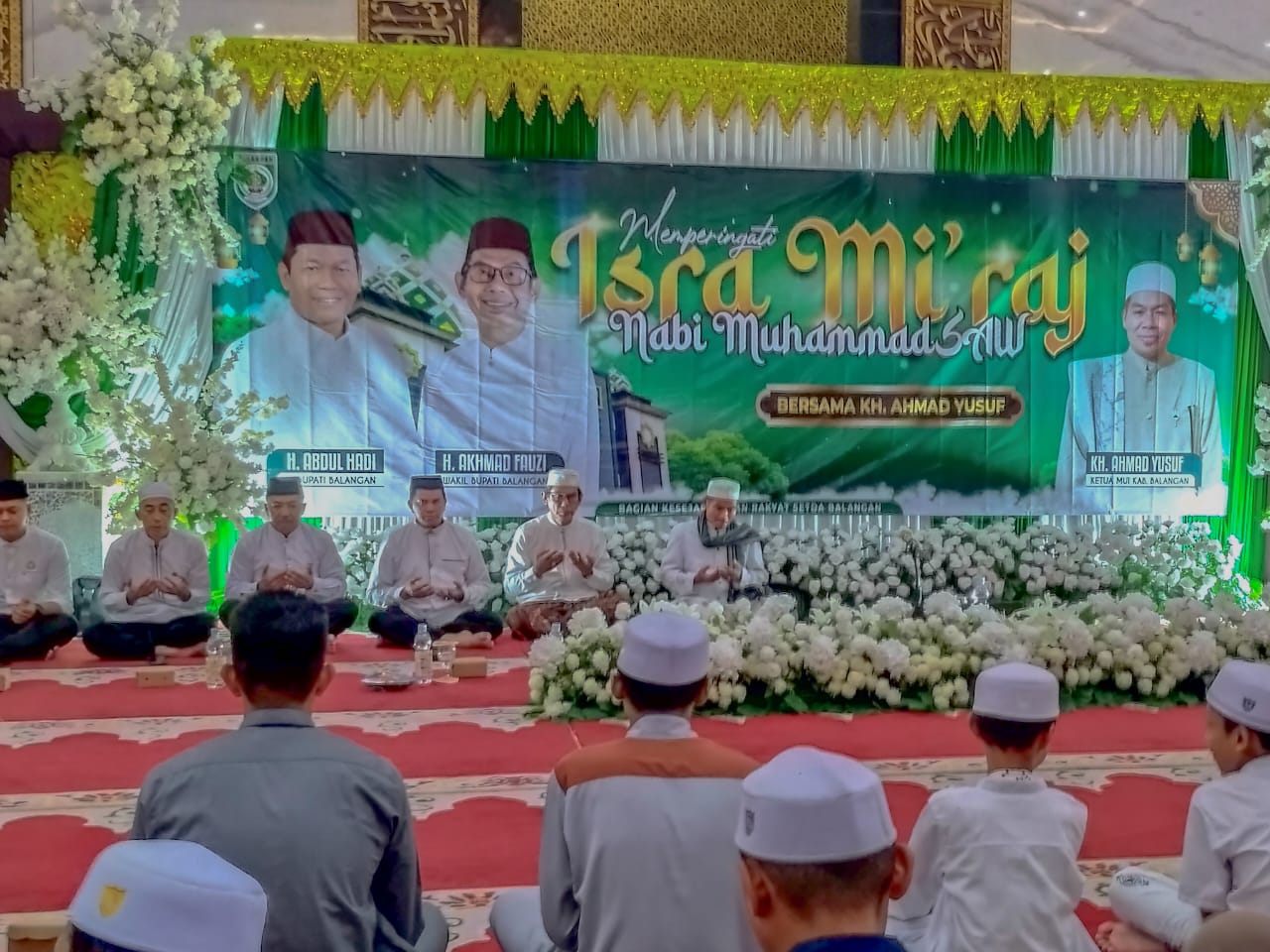 Sementara itu, penceramah KH. Ahmad Yusuf selaku Ketua MUI Kabupaten Balangan dalam tausiyahnya menjelaskan secara mendalam perjalanan Isra Mi’raj Nabi Muhammad SAW. Ia mengajak jamaah untuk tidak hanya memahami kisahnya, tetapi juga mengamalkan pesan-pesan spiritual yang terkandung di dalamnya, khususnya menjaga shalat sebagai tiang agama.