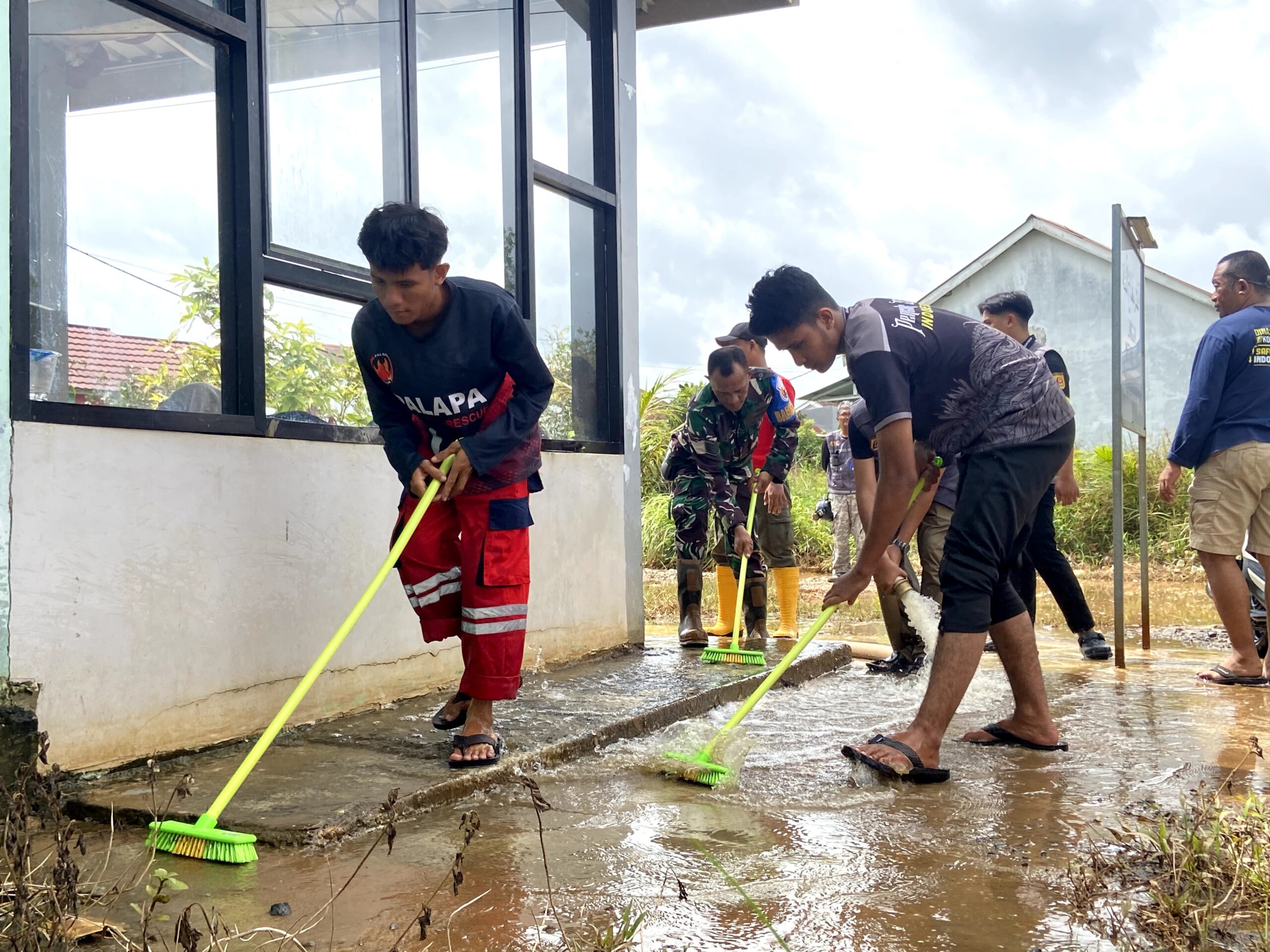 Dengan semangat gotong royong, para relawan bersama warga setempat membersihkan lumpur, sampah, dan sisa genangan air di sejumlah tempat ibadah.