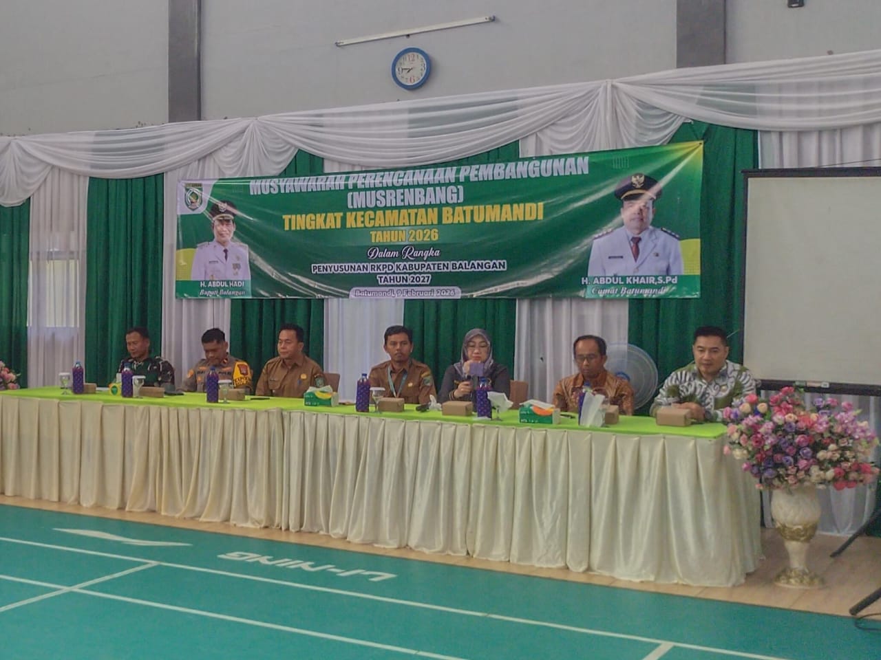 BALANGAN, dnusantarapost.com – Pemerintah Kecamatan Batu Mandi menggelar Musyawarah Perencanaan Pembangunan (Musrenbang) tingkat kecamatan sebagai bagian dari penyusunan rencana pembangunan daerah. Kegiatan tersebut berlangsung di Gedung Serbaguna Kecamatan Batu Mandi, Kabupaten Balangan, Senin (9/2/2026).