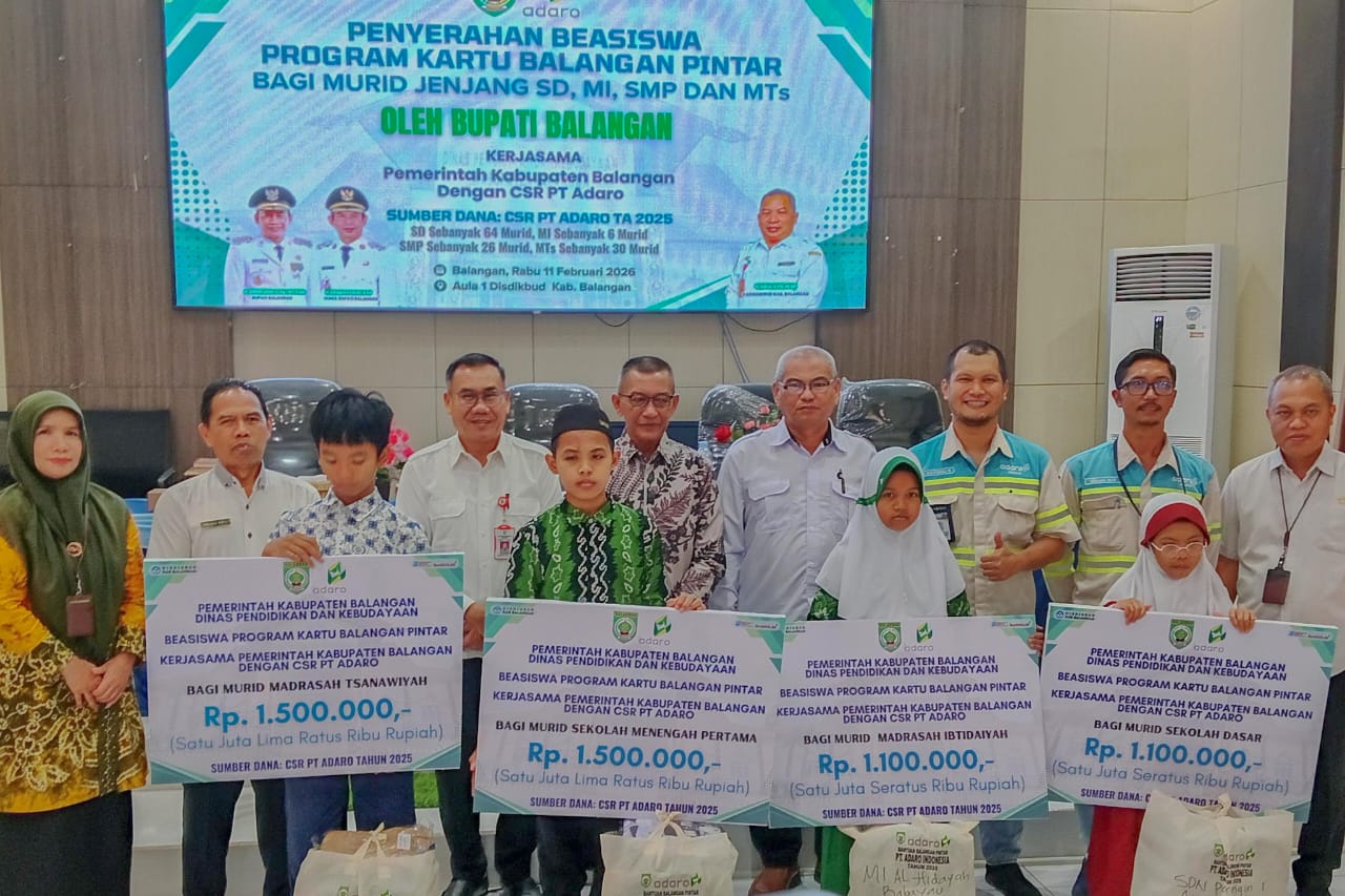 BALANGAN, dnusantarapost.com – Sebanyak 126 pelajar di Kabupaten Balangan menerima bantuan perlengkapan sekolah melalui program Kartu Balangan Pintar (KBP) yang didukung dana Corporate Social Responsibility (CSR) PT Adaro Indonesia. Penyerahan bantuan berlangsung di Aula Dinas Pendidikan Balangan, Rabu (11/2/2026).