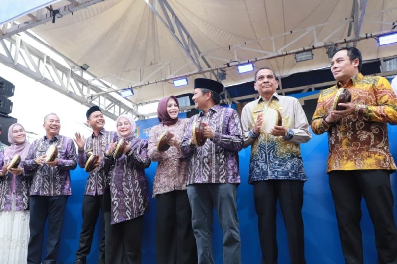 BANJARMASIN, dnusantarapost.com – Wakil Gubernur Kalsel, H. Hasnuryadi Sulaiman, didampingi Ketua BKOW Kalsel drg. Ellyana Trisya Hasnuryadi secara resmi membuka Festival Pasar Wadai Ramadan 1447 H melalui prosesi penabuhan rampak kendang di Panggung Utama Siring 0 Km, Banjarmasin, (19/2/2026).