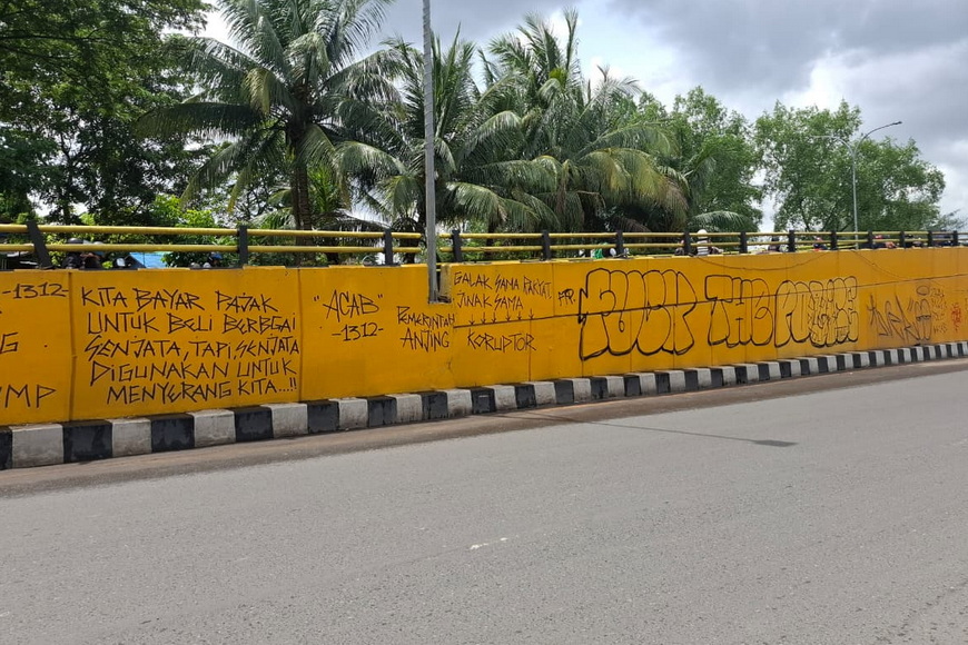 Pantauan di lokasi menunjukkan berbagai tulisan bernada kritik sosial hingga hujatan terhadap pemerintah terpampang di dinding fasilitas publik tersebut.