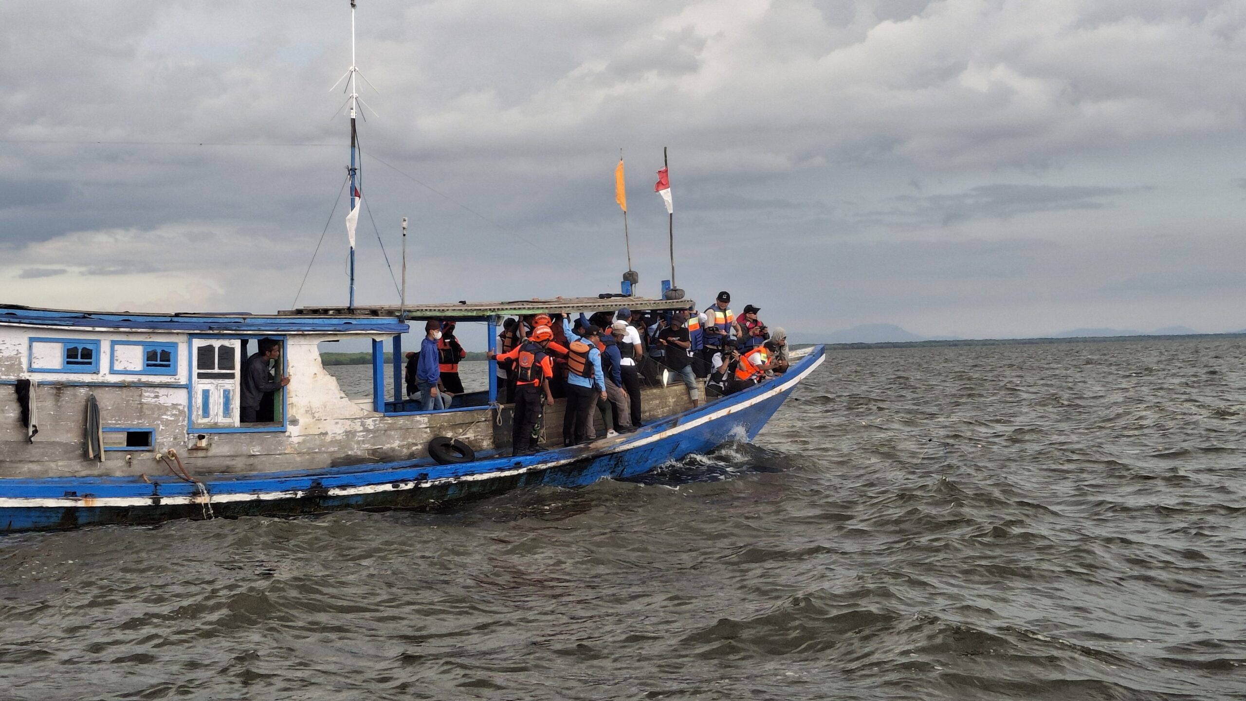Berangkat menggunakan kapal bersama rombongan, kehadiran Bupati Rahmat menjadi penegasan komitmen Pemkab Tanah Laut dalam mendorong kesejahteraan nelayan melalui program inovasi daerah “Siap Melaut”.