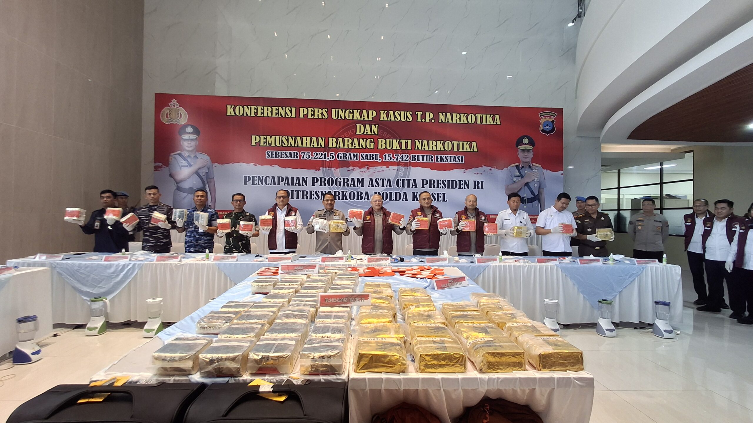 BANJARBARU, dnusantarapost.com – Kepolisian Daerah Kalimantan Selatan (Polda Kalsel) berhasil mengungkap kasus peredaran narkotika dalam jumlah besar dengan total barang bukti mencapai 75 kilogram sabu-sabu dan 15.742 butir ekstasi.