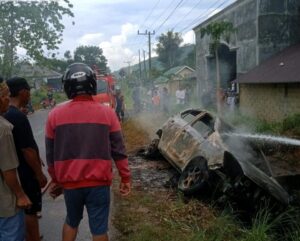 Geger, Sebuah Minibus Terbakar di Jalan Raya Takisung